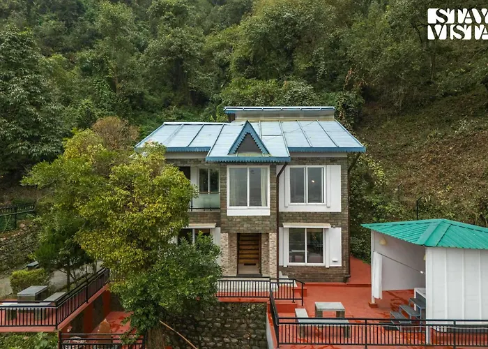 Situated nearly 5 minutes' walk from the Hanuman Garhi Temple, the 3-bedroom Stayvista At Viva La Vida - Bonfire, Jacuzzi, Ac Bhimtal villa provides guests with a hot tub for additional relaxation. Featuring access to a terrace, this Bhimtal villa is located 4.1 km from the Hanuman Temple.